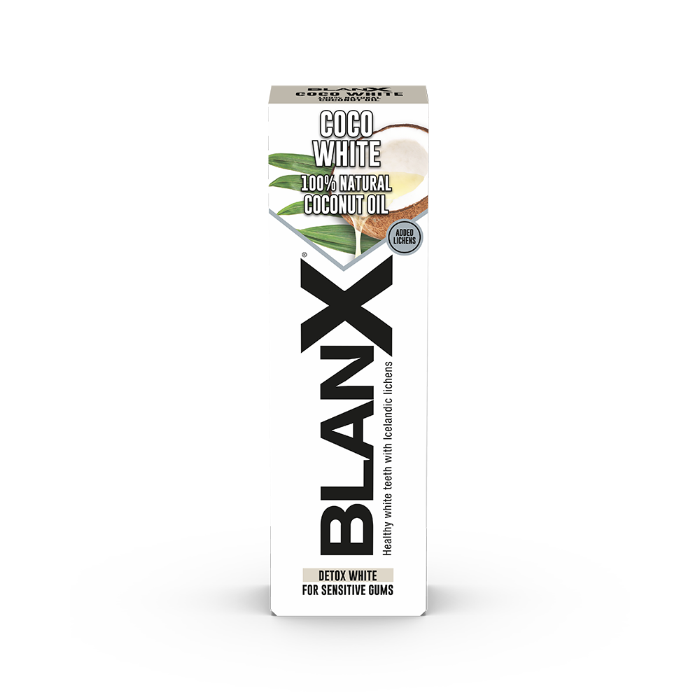 Zobna pasta BlanX® Coco White nežno posvetli vaše zobe, obenem pa pomirja in razstruplja. Zdaj je na voljo z izboljšano formulo z dodatkom lišajev.