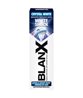 BlanX® White Shock je prva linija izdelkov, ki zobe beli na naraven način in brez uporabe peroksida. Formula deluje s pomočjo svetlobe, ki aktivira njen belilni učinek. Ko se ActiluX®, aktivna učinkovina sredstva BlanX® White Shock, aktivira s svetlobo, sproži fotokemično reakcijo s kisikom in vodo iz okolja (vlaga v ustih in zraku). Pri tem nastajajo radikali, ki so neškodljivi za človeško telo, a učinkovito uničujejo tujke, kot so nečistoče, onesnaževalci, bakterije in kvasovke. To ima belilni in protibakterijski učinek, saj zobna pasta deluje na površini zob tako, da razgrajuje kompleksne pigmentne molekule v enostavnejše, brezbarvne oblike ter odstranjuje bakterijski biofilm, ki povzroča zobno gnilobo in številne druge ustne bolezni. Sredstvo se za več ur oprime površine zob in ustvari zaščitni mikrosloj, ki učinkuje samobelilno in protibakterijsko. Vse to omogoča delovanje svetlobe. Tako se belilno in protibakterijsko delovanje sredstva ActiluX® nadaljuje vsakič, ko je izpostavljeno sončni svetlobi ali svetlobi, ki jo oddaja ustrezen vir (npr. LED lučki). Ta proces je mogoče pospešiti z uporabo naprav (LED lučk), ki so priložene v embalaži White Shock, saj več svetlobe, kot prejme površina zoba, močnejši je belilni in protibakterijski učinek. Aktivna sestavina ActiluX® ne poškoduje zob, saj deluje le na površini, kjer napada površinske organske molekule in zobne obloge, ki so pogosto odgovorne za porumenelost in izgubo sijaja zobne sklenine. Ker se ActiluX® dolgo časa oprijema površine zob, nadaljuje z belilnim in protibakterijskim delovanjem tudi po umivanju zob. S tem preprečuje nastanek in utrjevanje drugih površinskih madežev, ki jih povzročajo hrana in pijača. Aktivna sestavina ActiluX® ni prav nič agresivna do sklenine ter ohranja naravno raven vlažnosti dlesni in ustne sluznice. Pri treh različicah, ki so na voljo, traja učinek beljenja različno dolgo: BlanX® White Shock 75 ml: belilno in protibakterijsko delovanje traja več ur po umivanju zob; BlanX® White Shock 50 ml + BlanX® Led: belilno in aprotibakterijsko delovanje traja več ur po umivanju zob, pri čemer učinek dodatno okrepi LED lučka, ki ActiluX® aktivira že na ščetki, zato je sredstvo ob nanosu na sklenino že aktivno; Intenzivni tretma BlanX® White Shock Intensive Treatment: belilno in protibakterijsko delovanje traja več dni po uporabi naprave Led Bite, saj učinek ActiluX®, ki ga aktivira LED svetloba, na zobeh vztraja dlje časa in omogoča polprofesionalno beljenje. Glede trajanja izpostavljenosti svetlobi, za aktivacijo ActiluX® zadošča že nekaj sekund. Dlje časa kot je zobna pasta izpostavljena LED svetlobi naprave Led Bite, hitrejši in intenzivnejši bo belilni učinek.