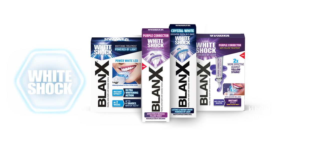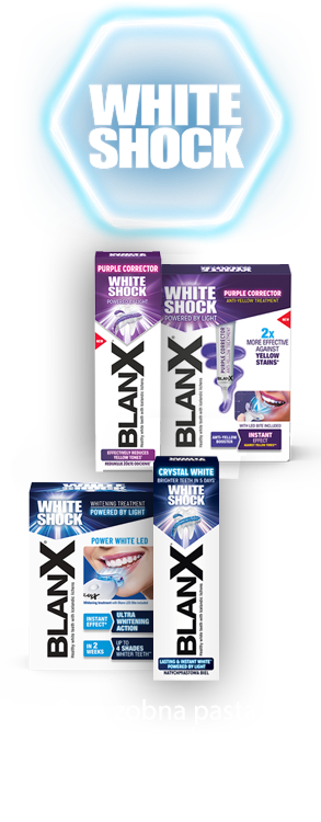 BlanX® White Shock je varna linija izdelkov, primerna za vse družinske člane. V primeru vašega 7-letnega sina, ki še nima stalnih zob, pa priporočamo posvet z zobozdravnikom.